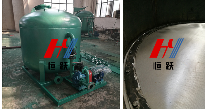 用原油、废油、脏油等比较脏的液体的固液分离作业,齿轮泵将待滤液经进液管泵入罐内,并充满,在压力的作用下,滤液中的固体杂质被滤液上的滤砂截留,滤液透过滤砂经滤网进入出液管流出罐体,从而得到清晰的滤液。随着过滤时间的增加,被截留在滤砂上的固体杂质越来越多,使滤渣不断增加,这样使过滤阻力增大,罐内压力升高,当压力升到一定值时需要更换滤料,停止向灌内输入待滤液并将压缩空气经进气管吹入罐内,将罐内待滤液压入其他容器内,将滤液排光。关闭压缩空气,打开卸料,将滤网上的滤渣经罐体下方卸料口排出。 将滤渣清理完成后关闭卸料口,打开装料口将准备好的过滤砂均匀地装入乐动网页版内,将过滤砂装至4成即可,将装料口密封,换砂过程完成。